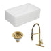 Kingston Brass Kitchen Sink Combo - Arcticstone 33-Inch White Stone Single Bowl Farmhouse Kitchen Sink with Deck Mount Kitchen Faucet and Basket Strainer, Brushed Brass
