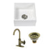 Arcticstone 15-Inch White Stone Undermount Single Bowl Farmhouse Bar Sink with Deck Mount Bar Faucet and Basket Strainer, Antique Brass