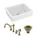 Kaolin 30-Inch Ceramic Single Bowl Farmhouse Kitchen Sink with Widespread Kitchen Faucet with Sprayer and Basket Strainer, Antique Brass
