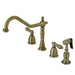 Heritage KB1793ALBS Double-Handle 4-Hole Widespread Kitchen Faucet with Brass Sprayer, Antique Brass