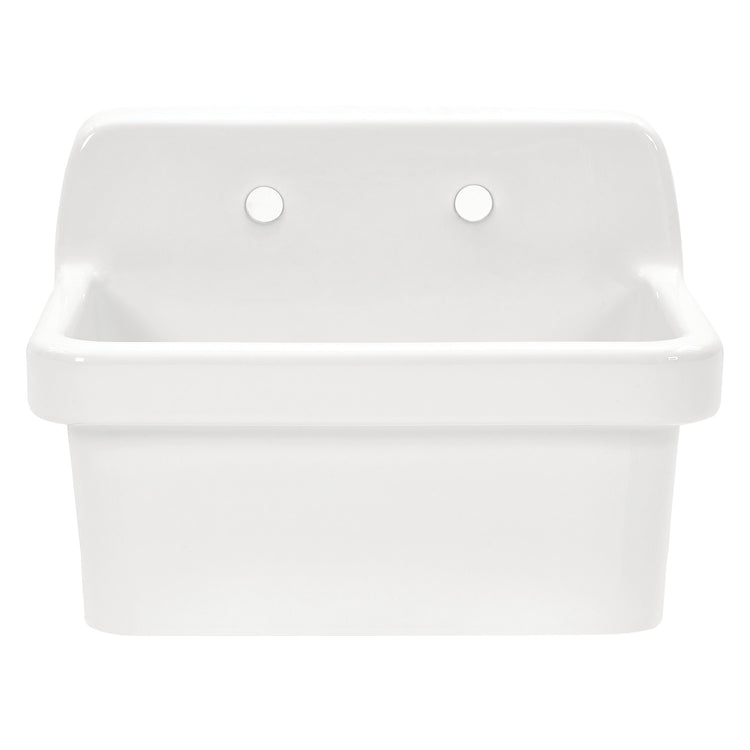Make a bold statement with Kingston's Doriteal collection. Design details include a backsplash and rolled-style basin lip making this sink a versatile piece perfectly suited to traditional, eclectic, industrial, or utilitarian design. The heavy-duty ceramic material makes this sink ideal for use in any kitchen, laundry room, or mud room, even for large households ready to put it to heavy daily use. This sink is glazed glossy white to ensure a refined look that lasts and will be easy to clean and maintain. This model features a standard 3-1/2" kitchen sink drain opening diameter. Please note, customers wishing to purchase an upgraded finish-matched drain for this sink will need to select one of our extended depth sink drain and strainer assemblies due to the thickness of the basin floor. Overall sink width is 24" and front-to-back depth from wall to lip is 19" providing a generous workspace to wash dishes, clothes, tools, or even pets! Overall sink height is 16-1/2" and basin depth is 8-7/8". The backsplash is pre-drilled with 8" centers for a wall-mount kitchen faucet.