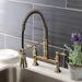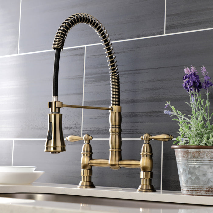 Kingston Tulare GS1273AL - Heritage Double-Handle 2-Hole Deck-Mount Pre-Rinse Bridge Kitchen Faucet, Antique Brass