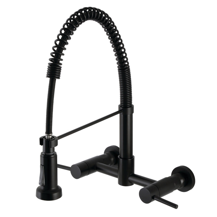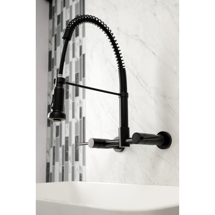 Kingston Sona GS8180DL - Concord Double-Handle 2-Hole Wall-Mount Pre-Rinse Bridge Kitchen Faucet, Matte Black