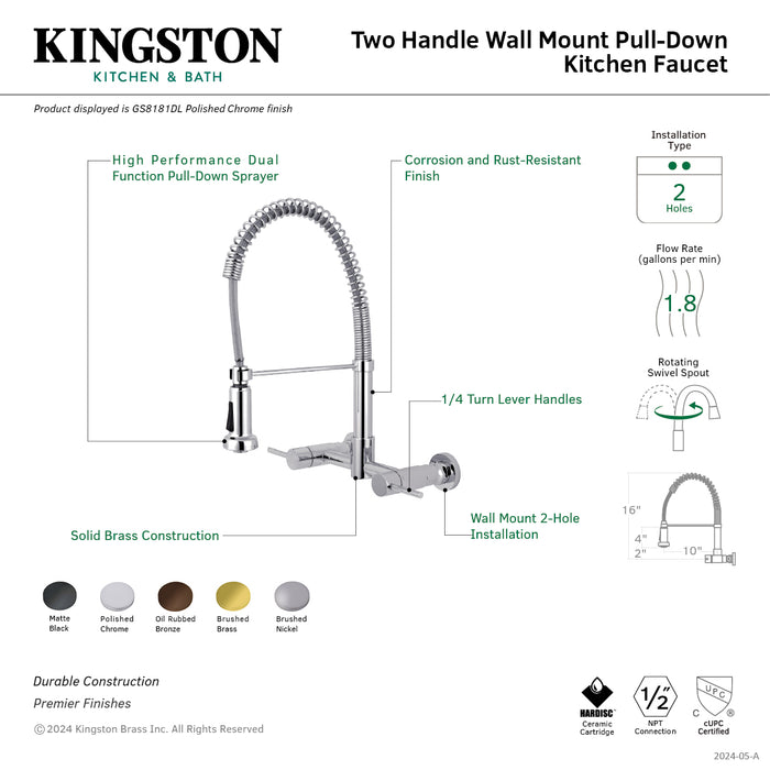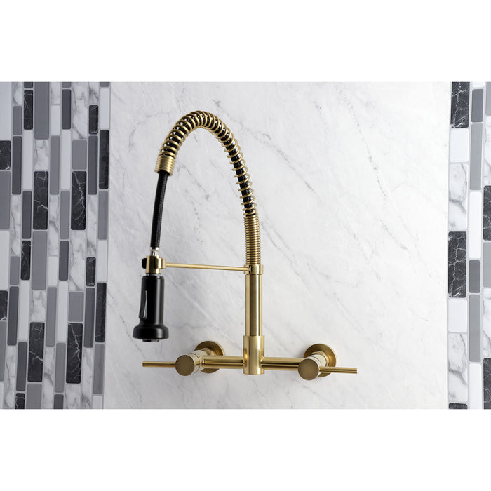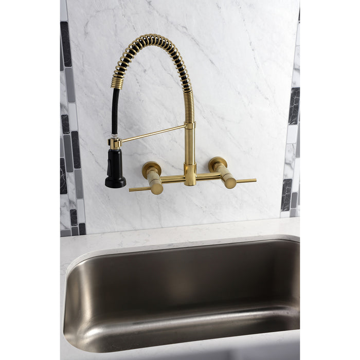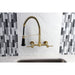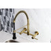 Kingston Sona GS8187DL - Concord Double-Handle 2-Hole Wall-Mount Pre-Rinse Bridge Kitchen Faucet, Brushed Brass