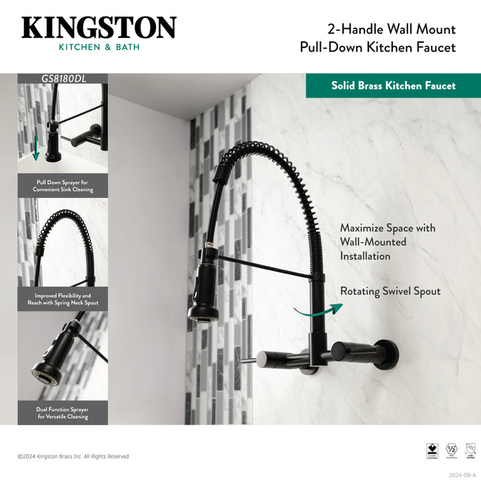 Kingston Sona GS8188DL - Concord Double-Handle 2-Hole Wall-Mount Pre-Rinse Bridge Kitchen Faucet, Brushed Nickel