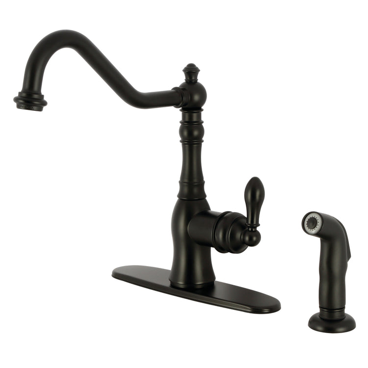 Kingston Heirloom GSY7700ACLSP - American Classic Single-Handle 2-or-4 Hole Deck Mount Kitchen Faucet with Side Sprayer, Matte Black