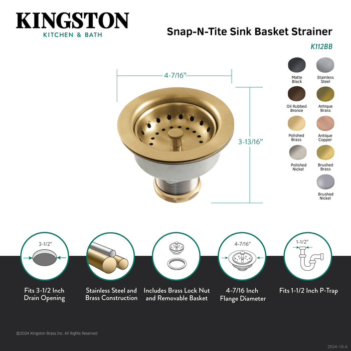 Kingston Tacoma K112AB 3-1/2 Inch Kitchen Sink Basket Strainer Only, Antique Brass