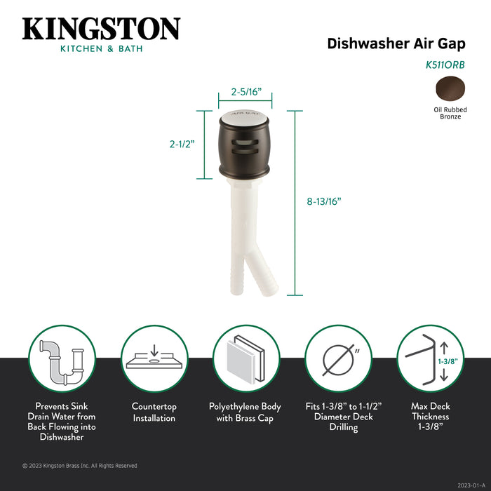 Kingston Heritage K511ORB Dishwasher Air Gap with Brass Cover, Oil Rubbed Bronze