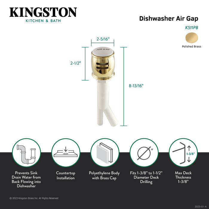 Kingston Heritage K511PB Dishwasher Air Gap with Brass Cover, Polished Brass