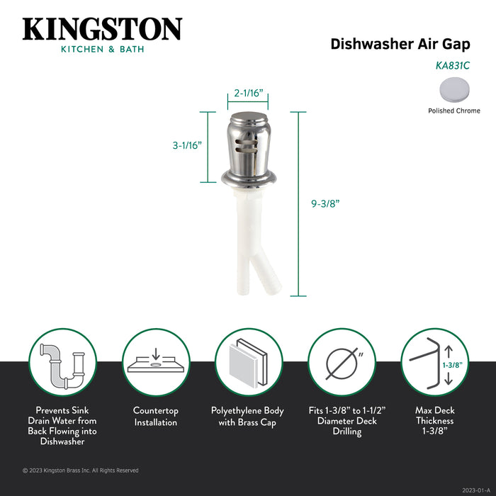 Kingston Heirloom KA831C - Trimscape Dishwasher Air Gap with Brass Cover, Polished Chrome