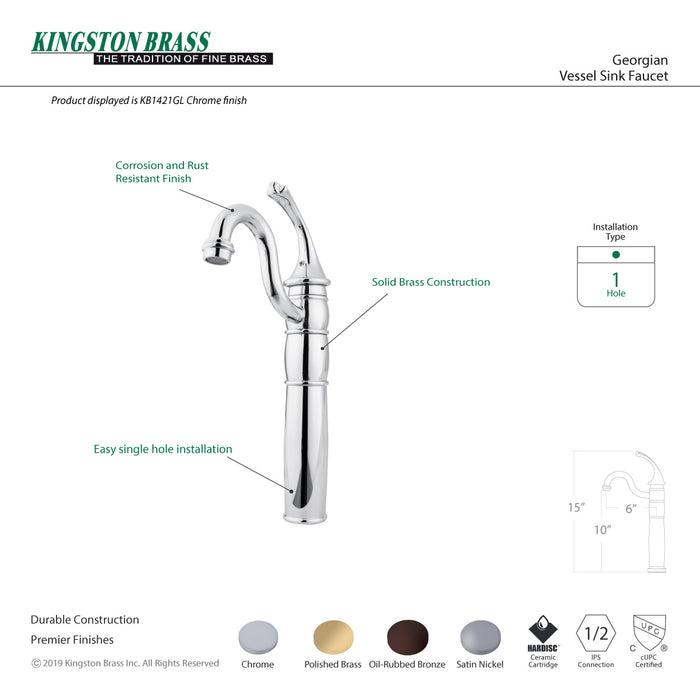 Kingston Heirloom KB1428GL - Georgian Single-Handle 1-Hole Deck Mount Vessel Faucet, Brushed Nickel