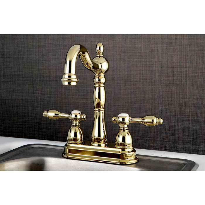 Kingston Heirloom KB1492TAL - Tudor Two-Handle 2-Hole Deck Mount Bar Faucet, Polished Brass