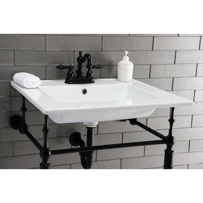Kingston Heirloom KB1600AL - Heritage Double-Handle 3-Hole Deck Mount 4-Inch Centerset Bathroom Faucet with Pop-Up Drain, Matte Black