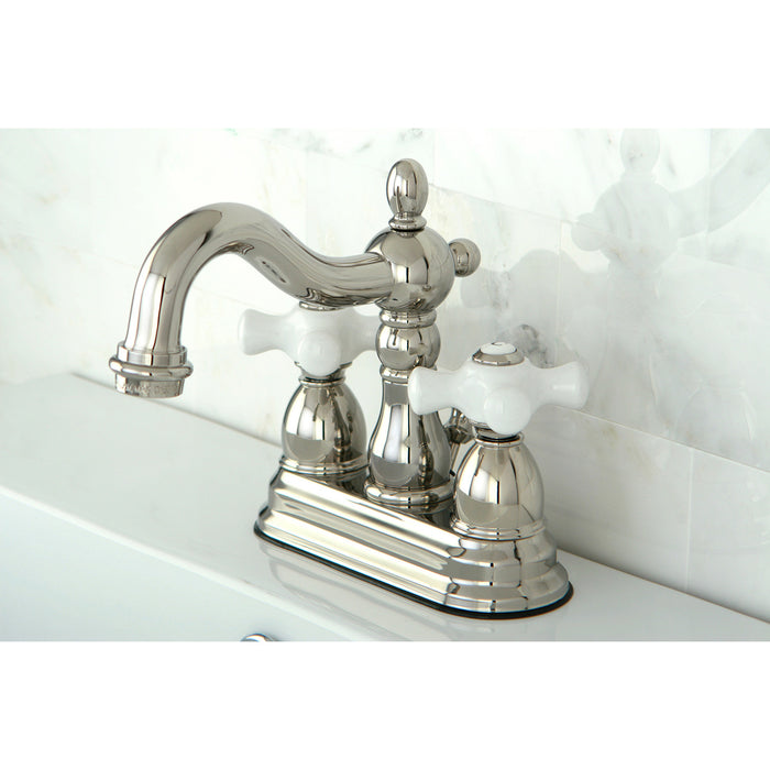 Kingston Heirloom KB1606PX - Heritage Double-Handle 3-Hole Deck Mount 4-Inch Centerset Bathroom Faucet with Pop-Up Drain, Polished Nickel