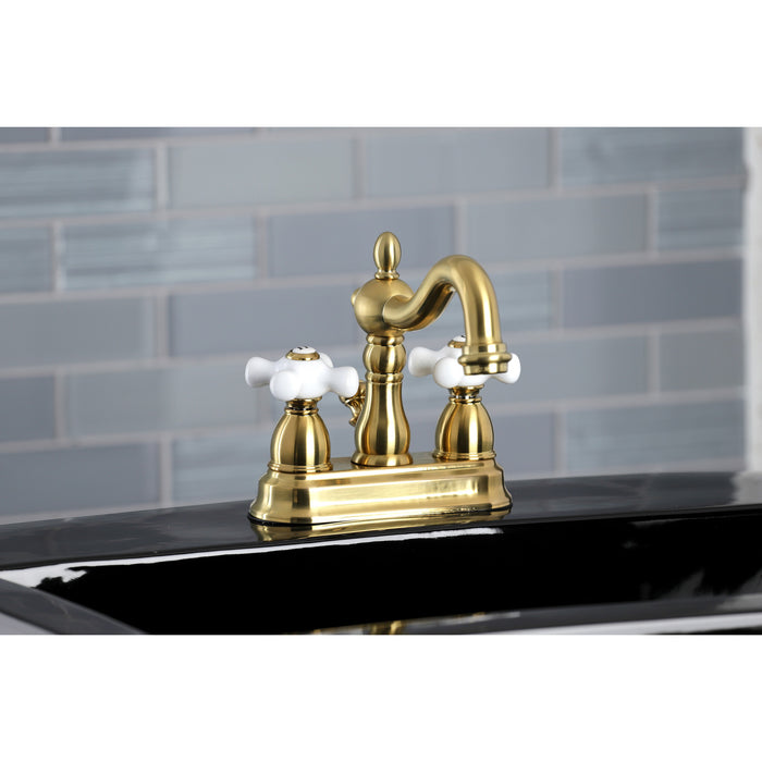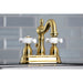Kingston Heirloom KB1607PX - Heritage Double-Handle 3-Hole Deck Mount 4-Inch Centerset Bathroom Faucet with Pop-Up Drain, Brushed Brass