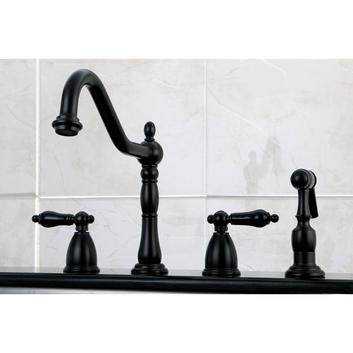 Kingston Heirloom KB1795PKLBS - Duchess Double-Handle 4-Hole Widespread Kitchen Faucet with Brass Sprayer, Oil Rubbed Bronze