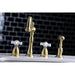 Heritage KB1797PXBS Double-Handle 4-Hole Widespread Kitchen Faucet with Brass Sprayer, Brushed Brass