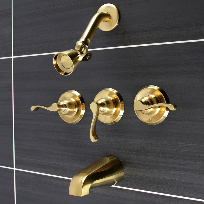 Kingston Tulare KB237FL - Royal Triple-Handle Tub and Shower Faucet, Brushed Brass