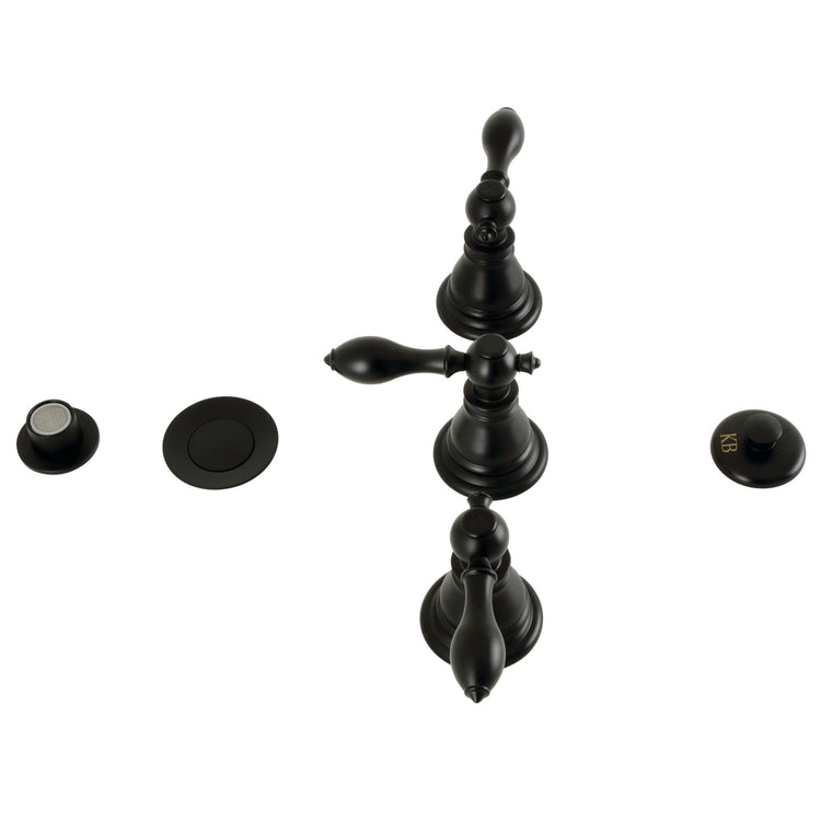 American Classic KB320ACL Three-Handle Deck Mount Vertical Spray Bidet Faucet with Brass Pop-Up, Matte Black