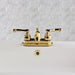 Mimic the stunning stylings of European households in your own home with this faucet's nod towards traditionalism. Centerset bathroom faucets are ideal for smaller bathrooms and feature an easy 3-hole installation. The Royale 4-inch centerset bathroom faucet and its featured sturdy brass construction and premium polished brass finish are guaranteed to glamorize your home's modern ensemble for years to come. By immersing your home with this faucet, anyone may feel like nobility. A matching finish drain is also included.