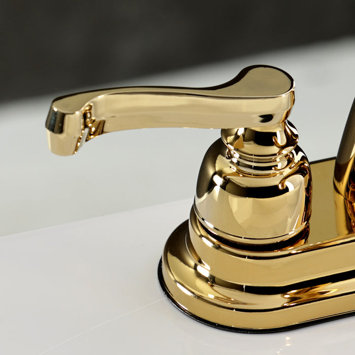 Kingston Tulare KB5612FL - Royale Double-Handle 3-Hole Deck Mount 4-Inch Centerset Bathroom Faucet with Pop-Up Drain, Polished Brass