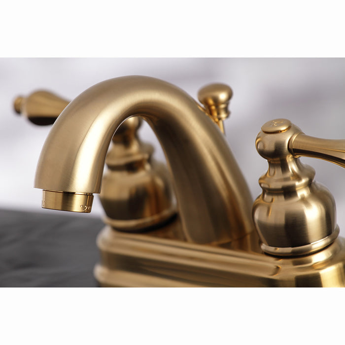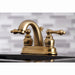 Kingston Heirloom KB5617AL - Restoration Double-Handle 3-Hole Deck Mount 4-Inch Centerset Bathroom Faucet with Pop-Up Drain, Brushed Brass