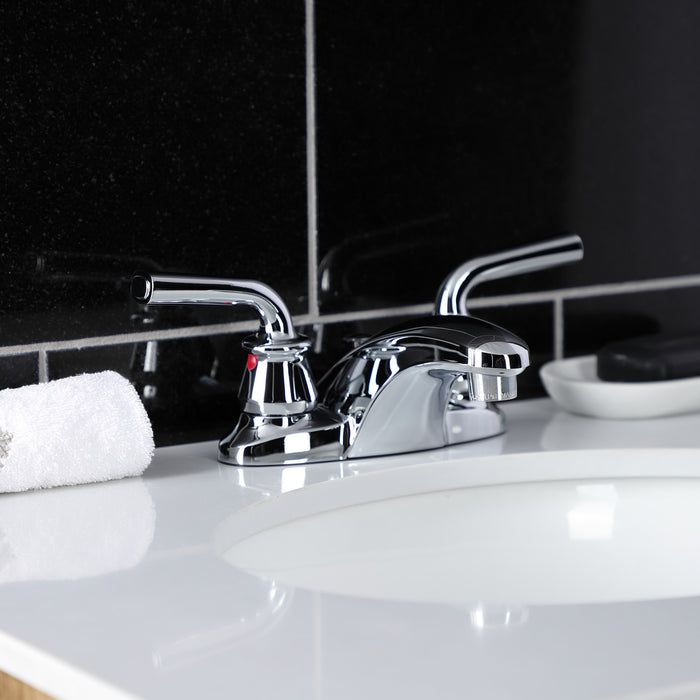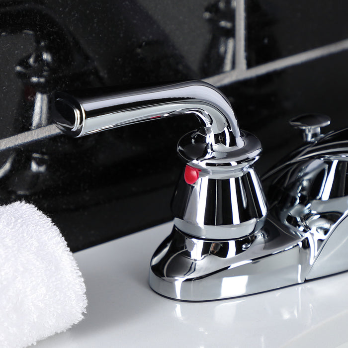 Kingston Tulare KB621RXLB - Restoration Double-Handle 3-Hole Deck Mount 4-Inch Centerset Bathroom Faucet with Brass Pop-Up, Polished Chrome