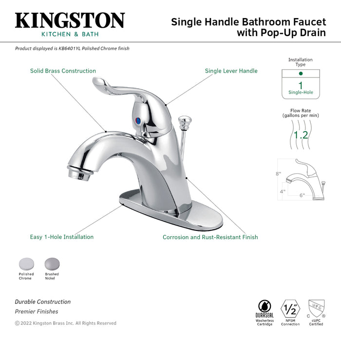 Kingston Tulare KB6401YL - Yosemite One-Handle 1-Hole Bathroom Faucet with Deck Plate and Pop-Up Drain, Polished Chrome