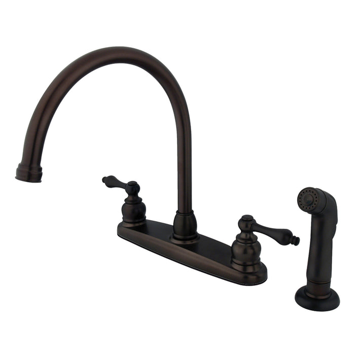 Kingston Heirloom KB725ALSP - Vintage Two-Handle 4-Hole 8" Centerset Kitchen Faucet with Side Sprayer, Oil Rubbed Bronze
