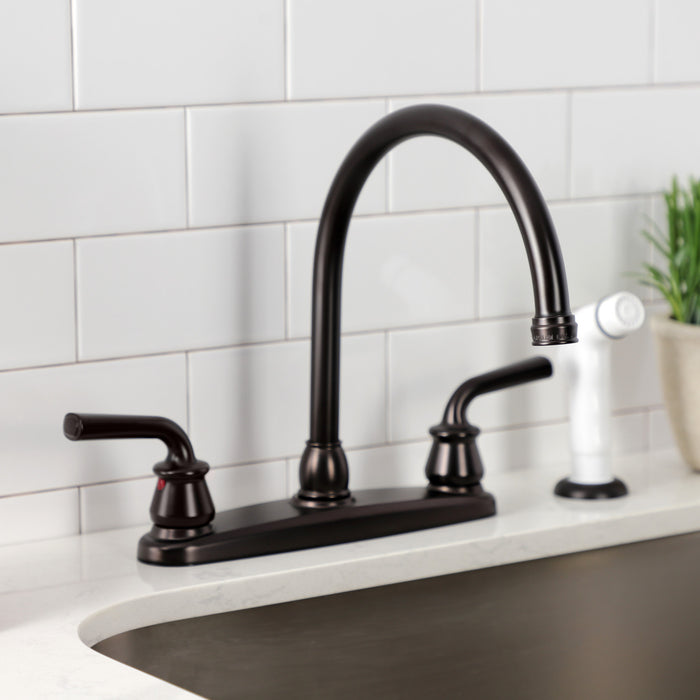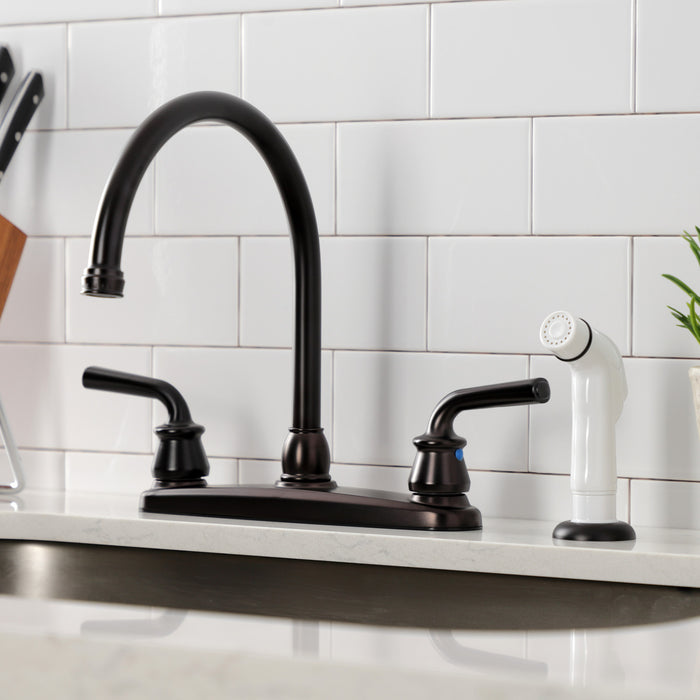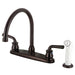 Kingston Tulare KB725RXL - Restoration Two-Handle 4-Hole 8" Centerset Kitchen Faucet with White Side Sprayer, Oil Rubbed Bronze