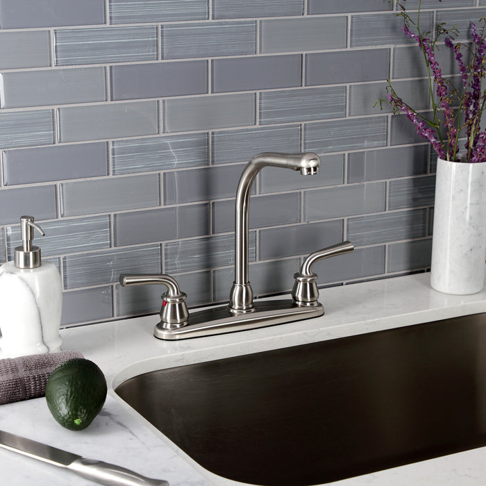 Kingston Tulare KB758RXLLS - Restoration Two-Handle 3-Hole 8" Centerset Kitchen Faucet, Brushed Nickel