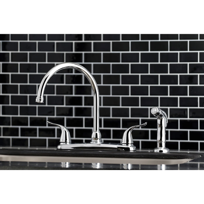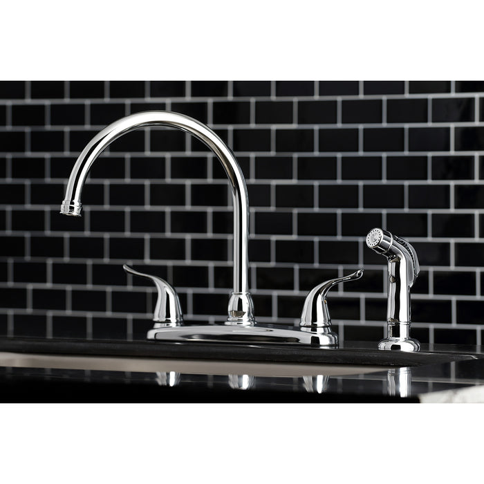 Kingston Tulare KB791YLSP - Yosemite Two-Handle 4-Hole 8" Centerset Kitchen Faucet with Side Sprayer, Polished Chrome