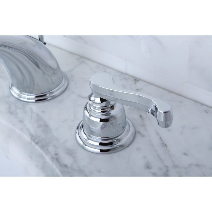 Kingston Tulare KB8961FL - Royale Two-Handle 3-Hole Deck Mount Widespread Bathroom Faucet with Pop-Up Drain, Polished Chrome