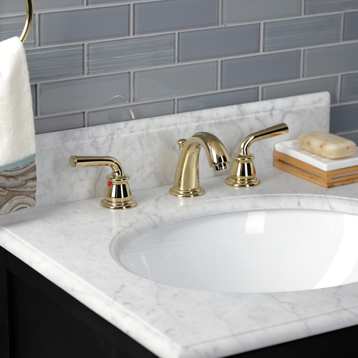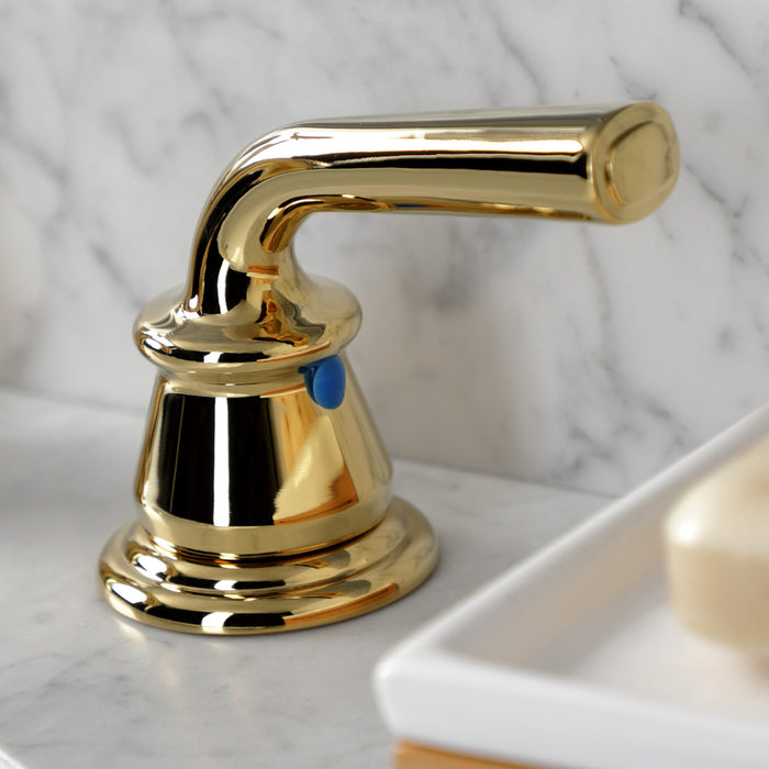 Kingston Tulare KB912RXL - Restoration Two-Handle 3-Hole Deck Mount Widespread Bathroom Faucet with Pop-Up Drain, Polished Brass