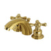 Kingston Heirloom KB947AXSB-Victorian Two-Handle 3-Hole Deck Mount Mini-Widespread Bathroom Faucet with Pop-Up Drain, Brushed Brass
