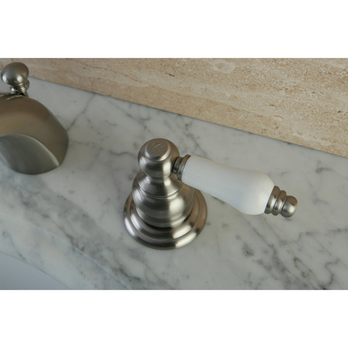 Kingston Heirloom KB948B - Victorian Two-Handle 3-Hole Deck Mount Mini-Widespread Bathroom Faucet with Pop-Up Drain, Brushed Nickel
