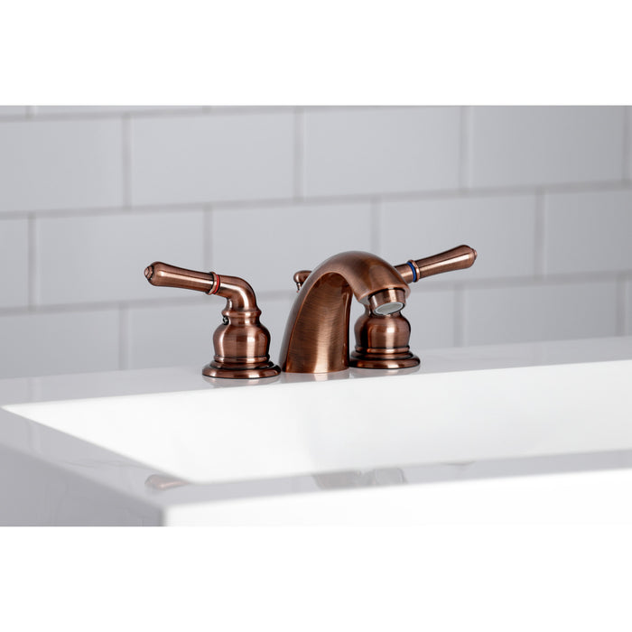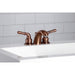 Kingston Tulare KB956 - Magellan Two-Handle 3-Hole Deck Mount Mini-Widespread Bathroom Faucet with Pop-Up Drain, Antique Copper
