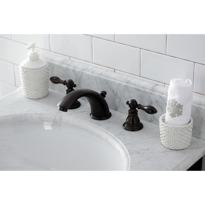 Kingston Tulare KB965ACL - American Classic Two-Handle 3-Hole Deck Mount Widespread Bathroom Faucet with Pop-Up Drain, Oil Rubbed Bronze
