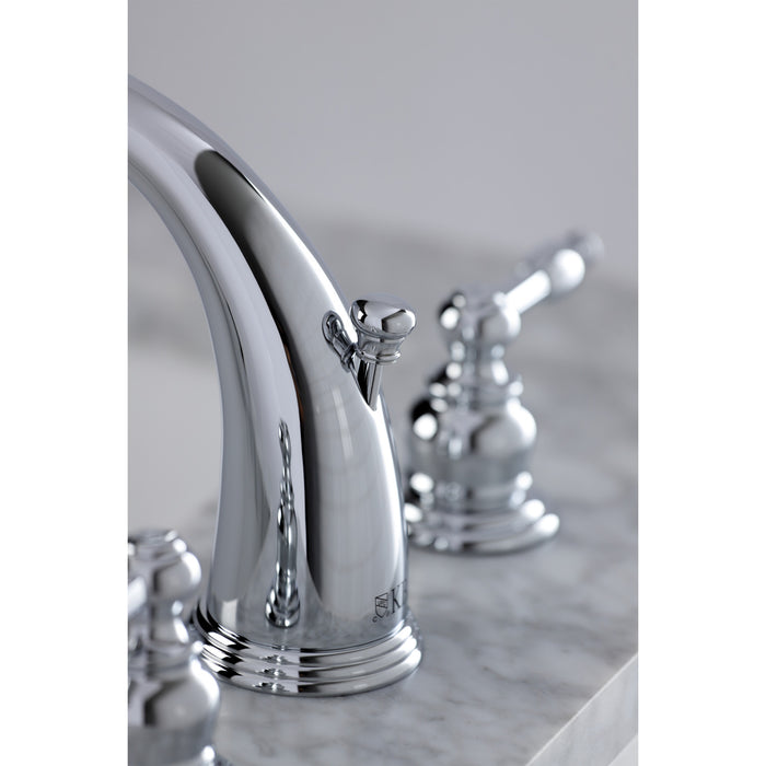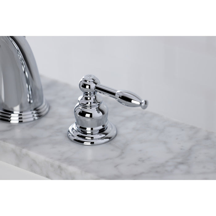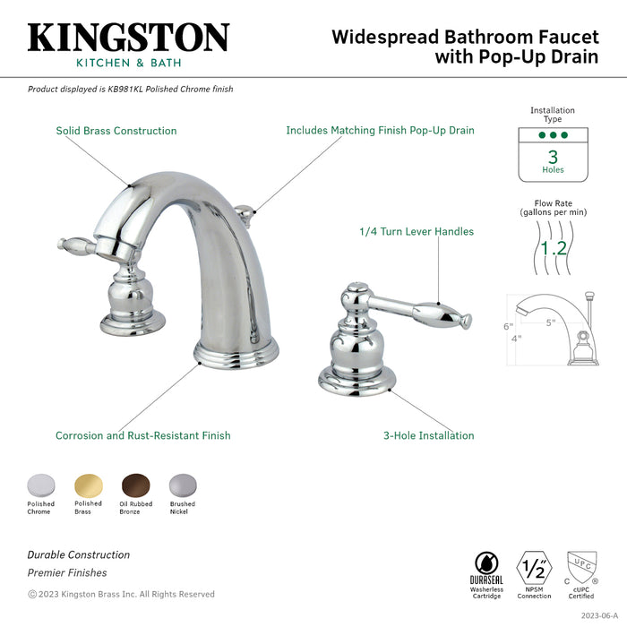 Kingston Heirloom KB981KL - Knight Two-Handle 3-Hole Deck Mount Widespread Bathroom Faucet with Pop-Up Drain, Polished Chrome