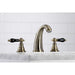 Crafted in commendations to English nobility, the exemplary design of this faucet manifests regality and elegance with its black porcelain handles. Ideal for more spacious bathrooms, widespread faucets are more spread apart and feature a 3-hole installation. The Duchess widespread bathroom faucet with pop-up drain and its featured sturdy brass construction and premium antique brass finish are guaranteed to glamorize your home's traditional ensemble for years to come. Glamorize your home today with the traditional elegance of this faucet. A matching finish drain is also included.