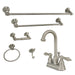 Kingston Heirloom KBK3618ALDouble-Handle 3-Hole Deck Mount 4-Inch Centerset Bathroom Faucet with 5-Piece Bathroom Accessories Kit, Brushed Nickel