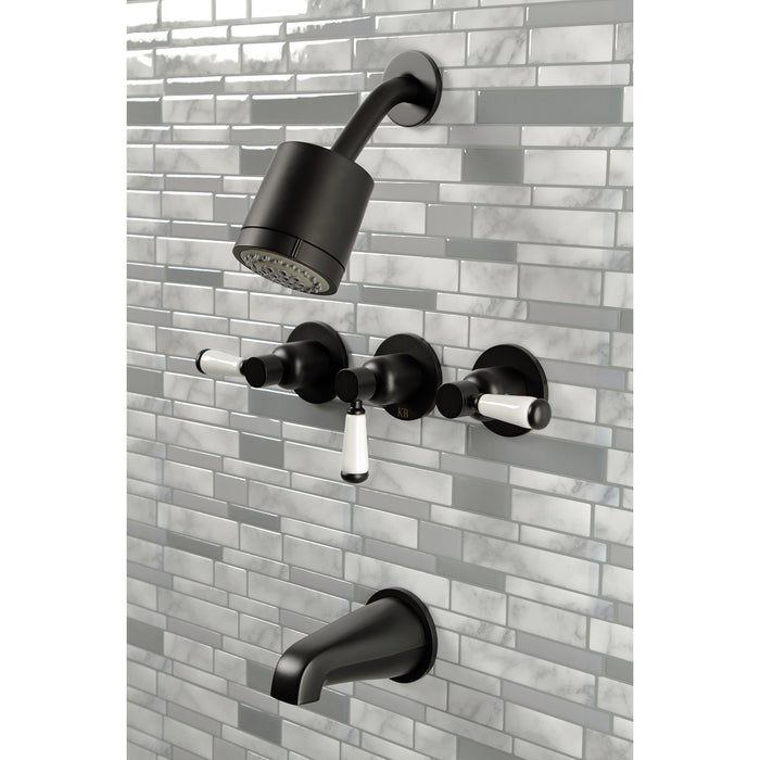 Kingston Tulare KBX8130DPL - Paris Triple-Handle Tub and Shower Faucet, Matte Black