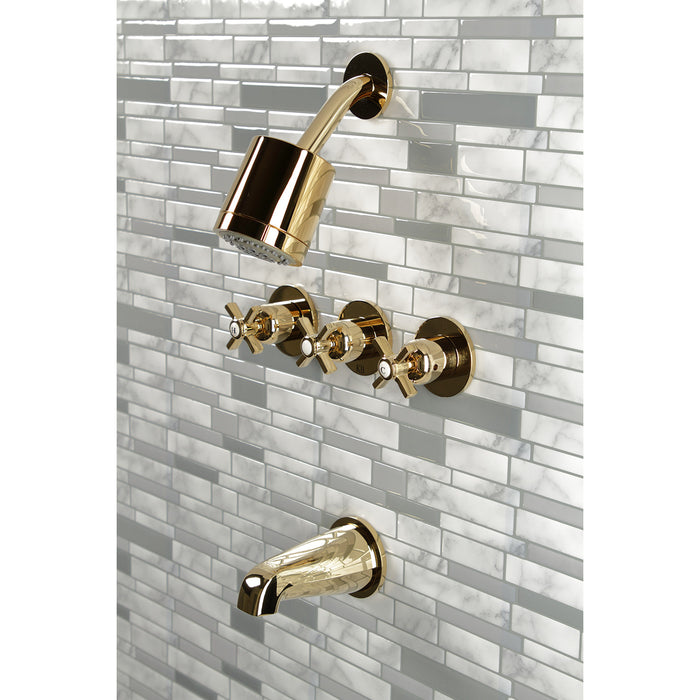 Kingston Tulare KBX8132ZX - Millennium Triple-Handle Tub and Shower Faucet, Polished Brass