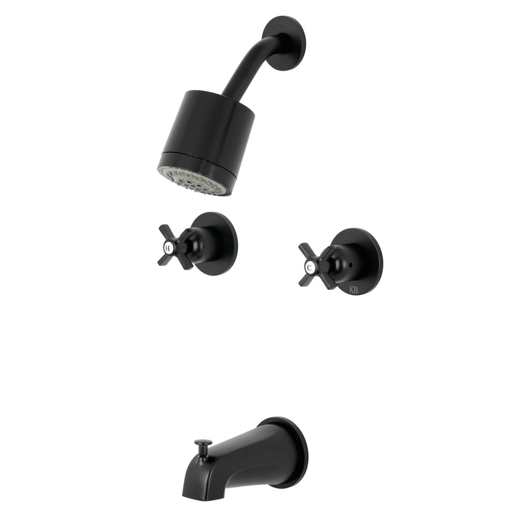Integrating eclectic style in your home is easy with this tub and shower faucet's classical design. Complete with easy-to-turn cross handles, an optimum bathing experience awaits. Enjoy the sturdy brass construction and premium matte black finish for a fixture that will last for years to come. Internal valve hardware is included for your use.