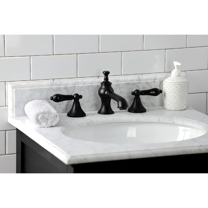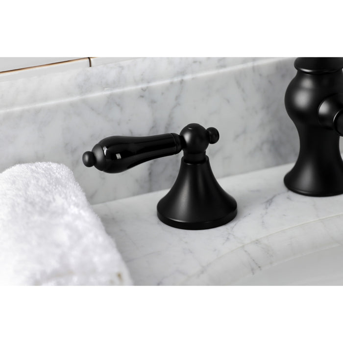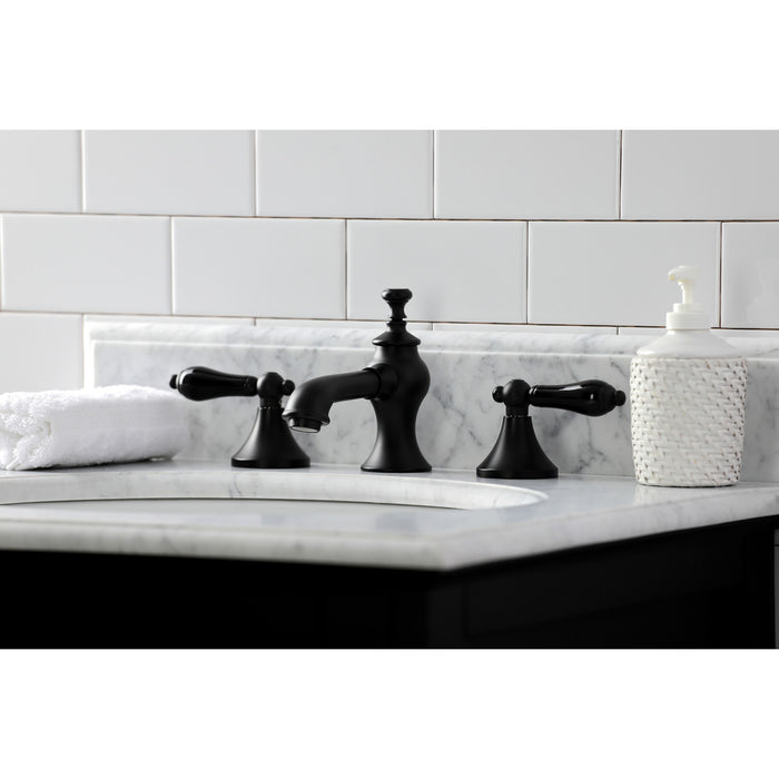 Kingston Tulare KC7060PKL - Duchess Two-Handle 3-Hole Deck Mount Widespread Bathroom Faucet with Brass Pop-Up, Matte Black