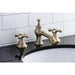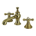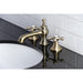 Kingston Tulare KC7063AX - Vintage Two-Handle 3-Hole Deck Mount Widespread Bathroom Faucet with Brass Pop-Up, Antique Brass