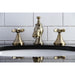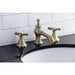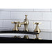 Kingston Tulare KC7063BEX - Essex Two-Handle 3-Hole Deck Mount Widespread Bathroom Faucet with Brass Pop-Up, Antique Brass