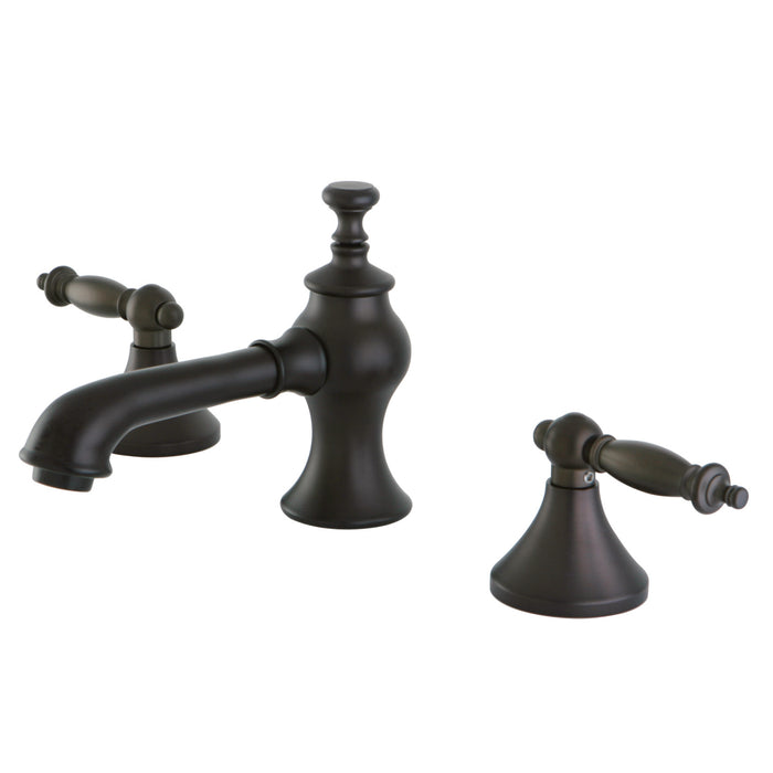 Kingston Tulare KC7065TL - Templeton Two-Handle 3-Hole Deck Mount Widespread Bathroom Faucet with Brass Pop-Up, Oil Rubbed Bronze