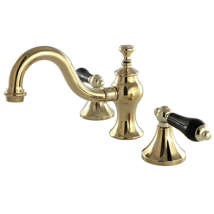 Crafted in commendations to English nobility, the exemplary design of this faucet manifests regality and elegance with its black porcelain handles. Ideal for more spacious bathrooms, widespread faucets are more spread apart and feature a 3-hole installation. The Duchess widespread bathroom faucet and its featured sturdy brass construction and premium polished brass finish are guaranteed to glamorize your home's traditional ensemble for years to come. Glamorize your home today with the traditional elegance of this faucet. A matching finish drain is also included.