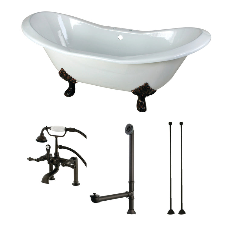 Aqua Eden KCT7D7231C5 72-Inch Cast Iron Oval Double Slipper Clawfoot Tub with Faucet Drain and Supply Lines Combo, White/Oil Rubbed Bronze